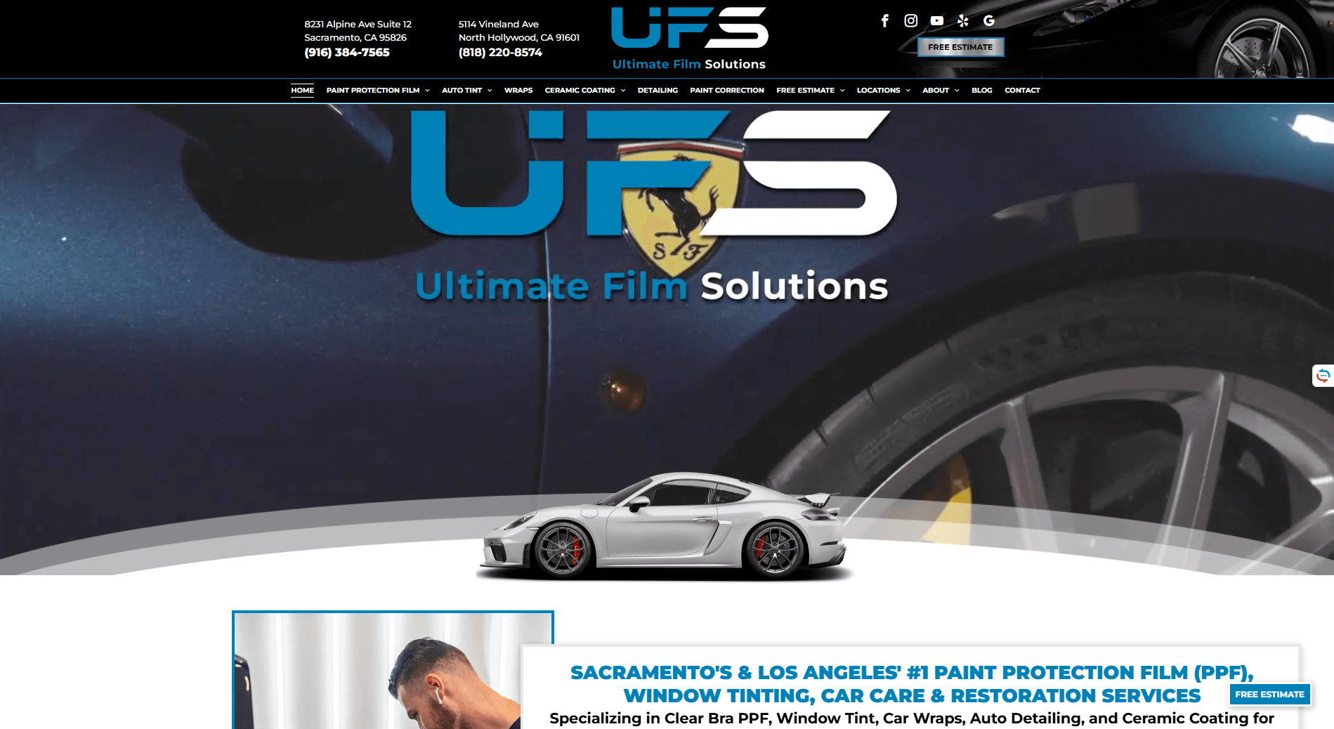 A clean and modern website for a window tinting and film protection business. Designed to highlight services, reviews, and contact forms.